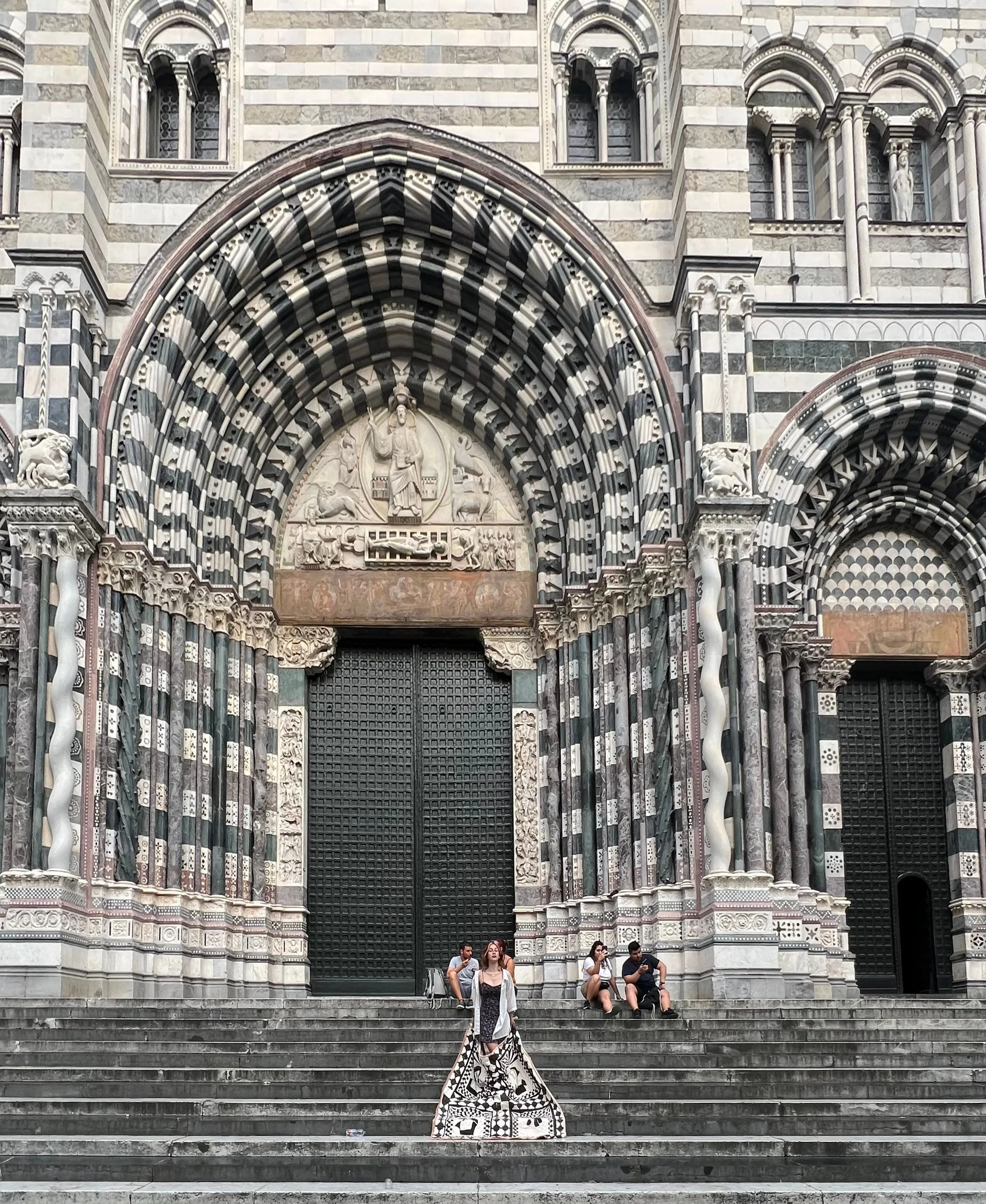 The main cathedral in Genoa seemed like it had called my quilt into existence. When I walked inside I couldn’t believe that I had made a quilt so similar to it in form and color. Not only that, but I had brought it with me to Italy. Of course, my daughter and I just had to do a photoshoot.