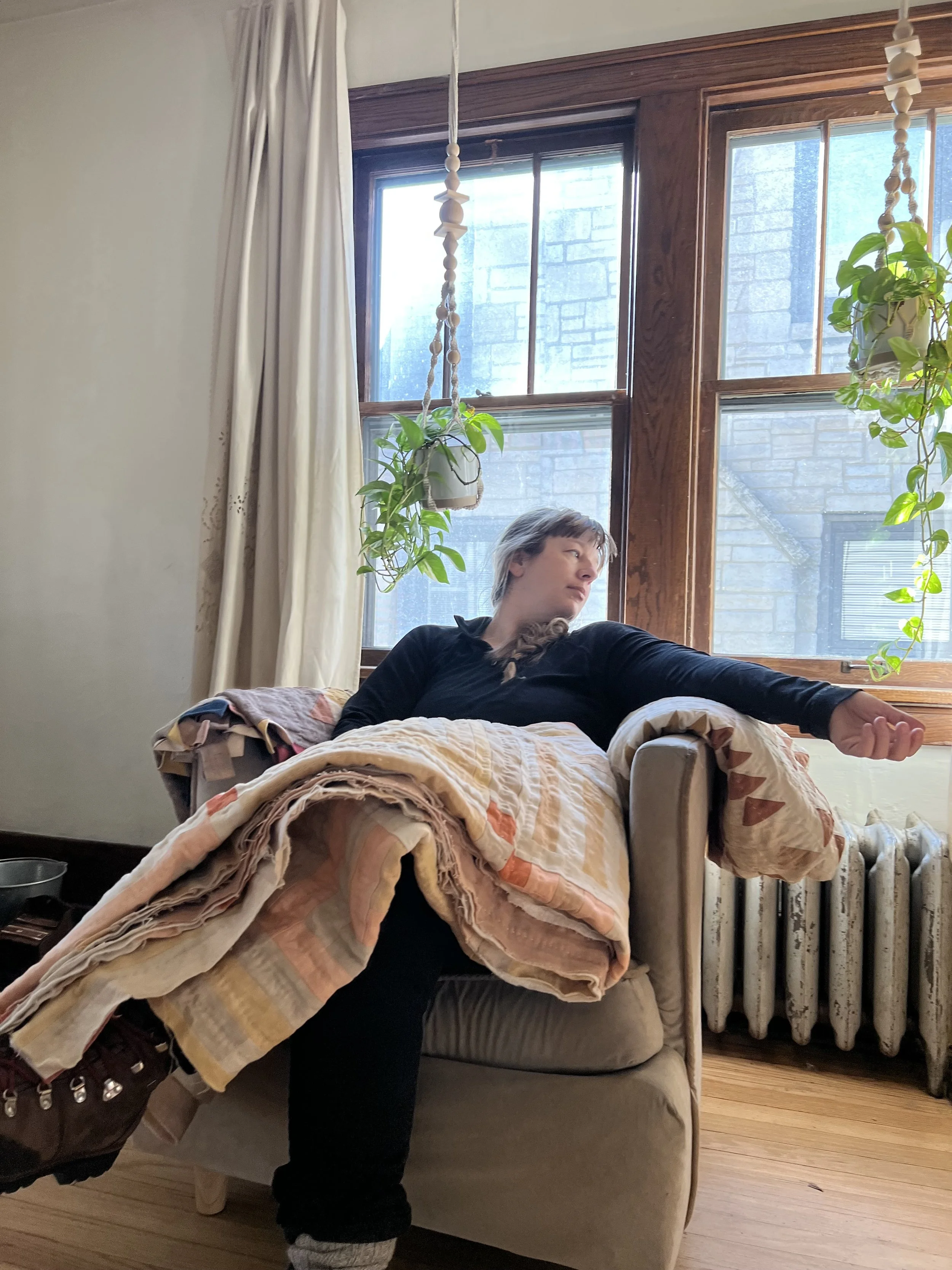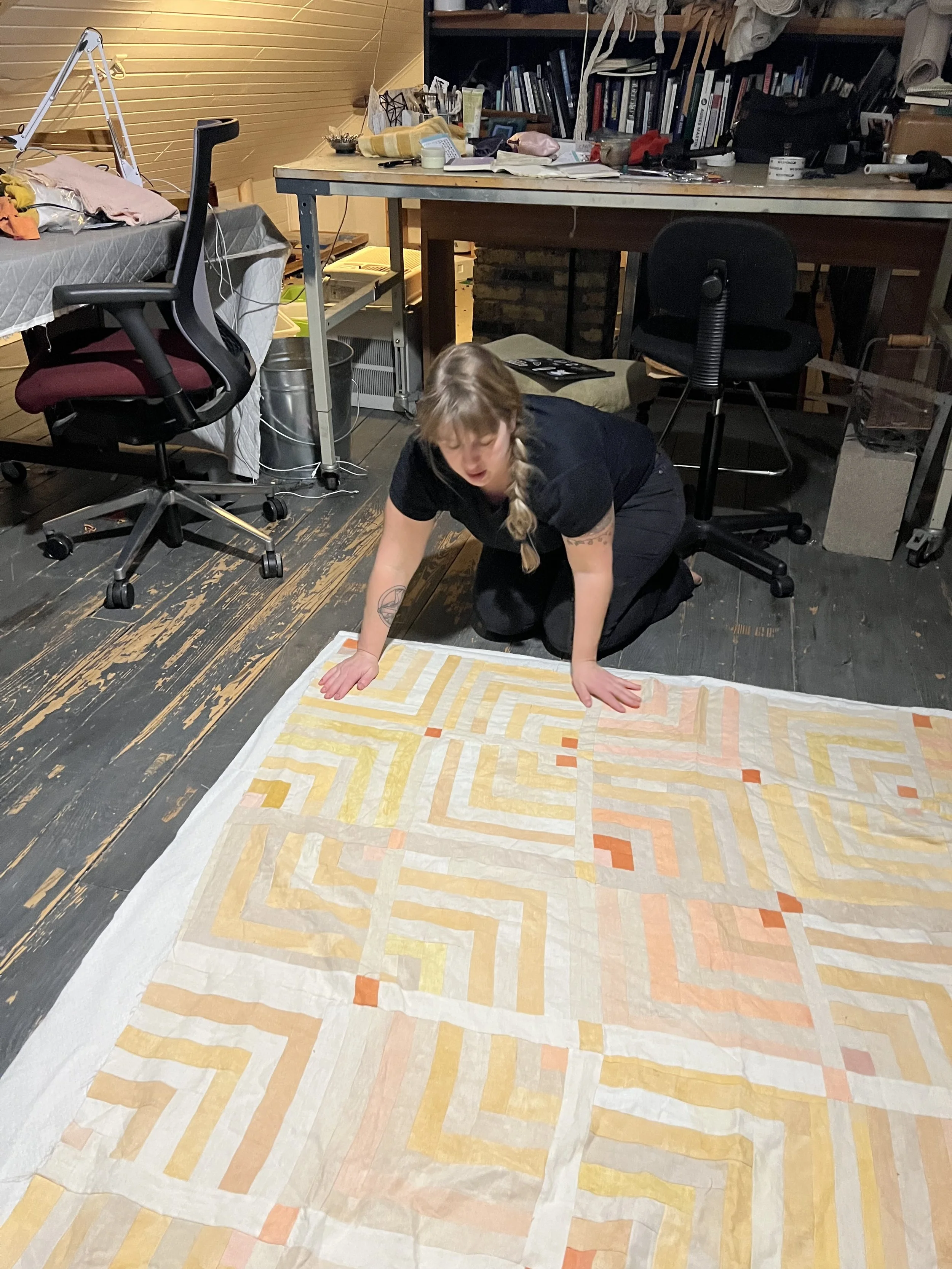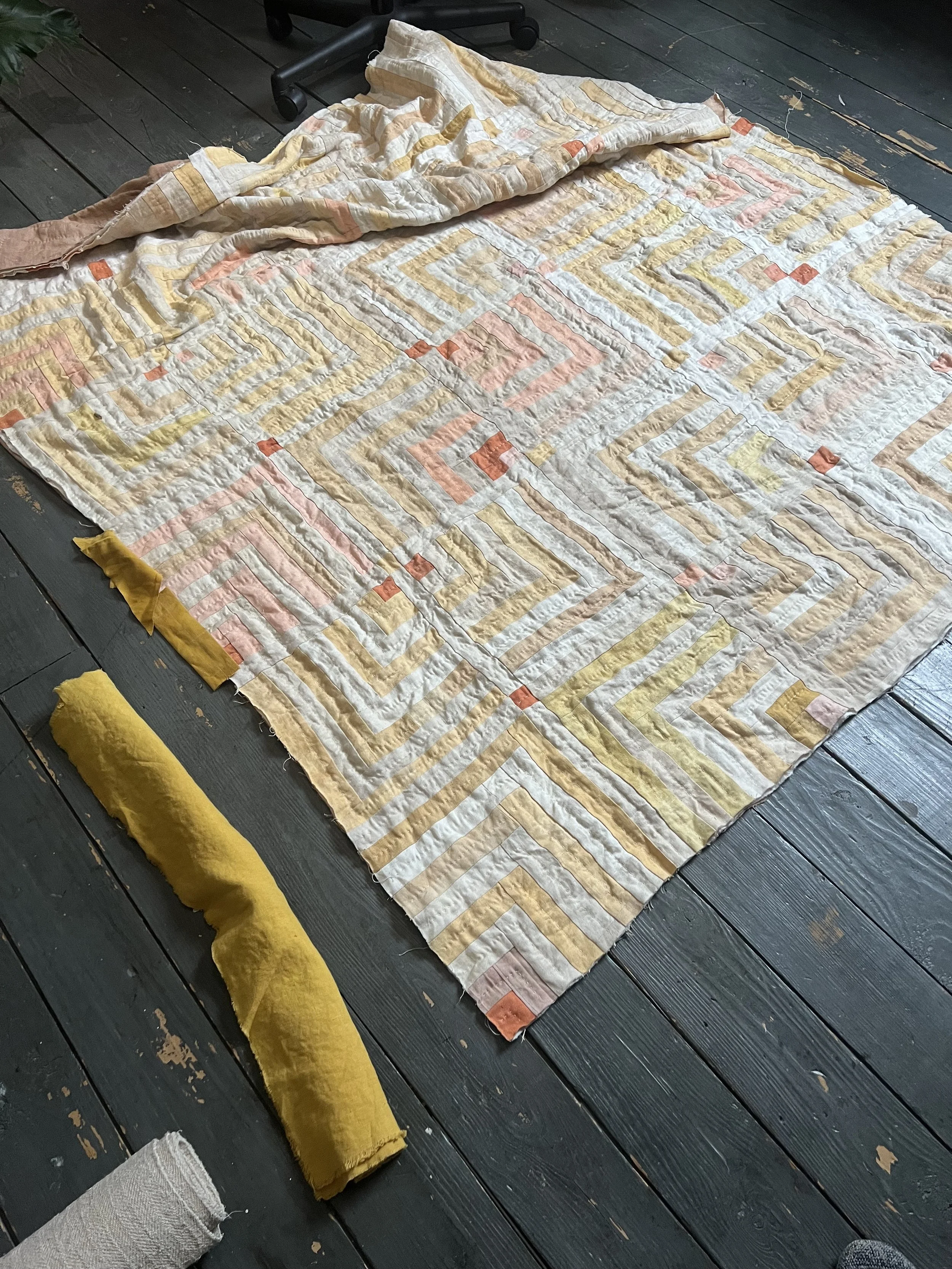 This quilt made me think of how we look for the way out of the Labyrinth. Color and lines. Texture and stitches. All the things I love and that what brings me comfort and calm. I’ve been convinced for too long that I should want something different than what I enjoy, but desire is the way through the labyrinth. This quilt will always be a reminder to me of that.