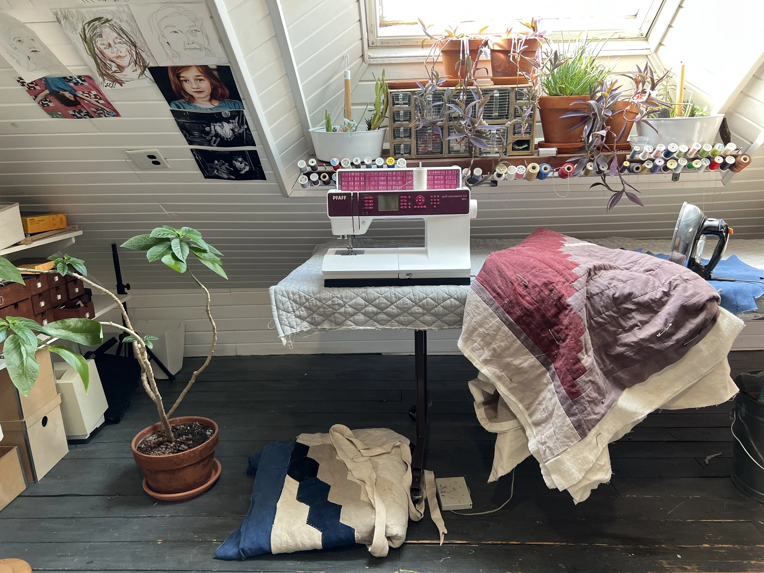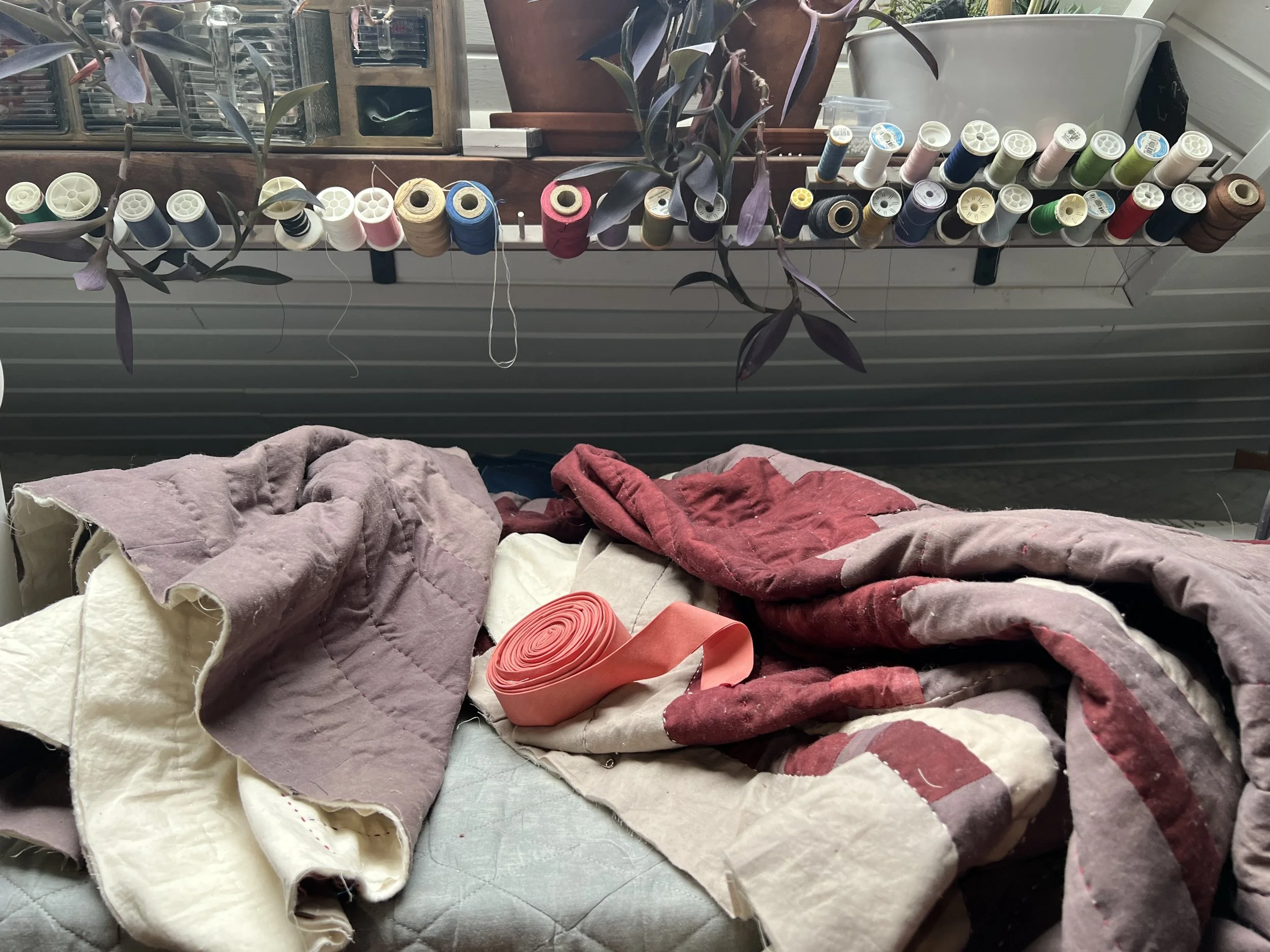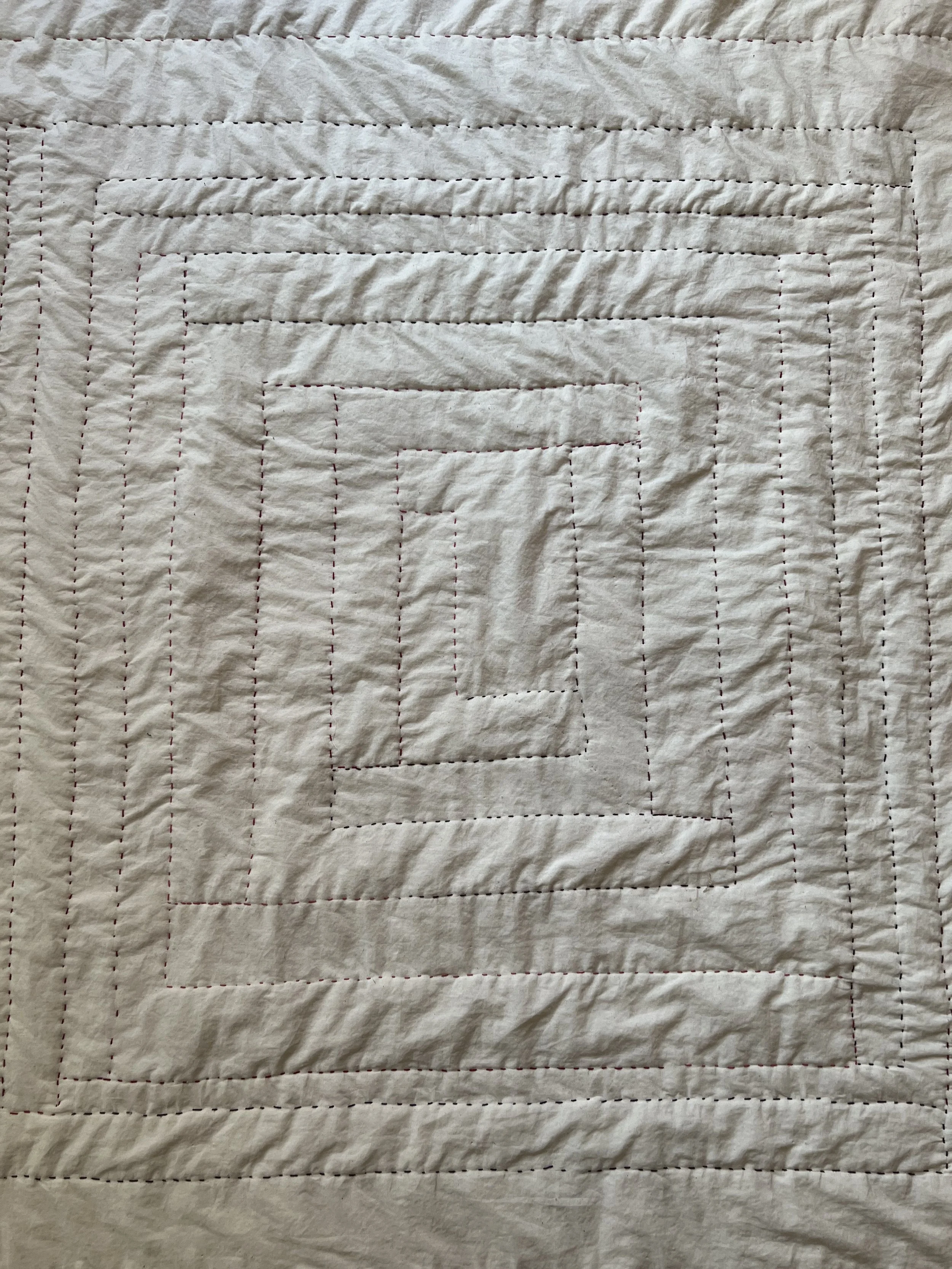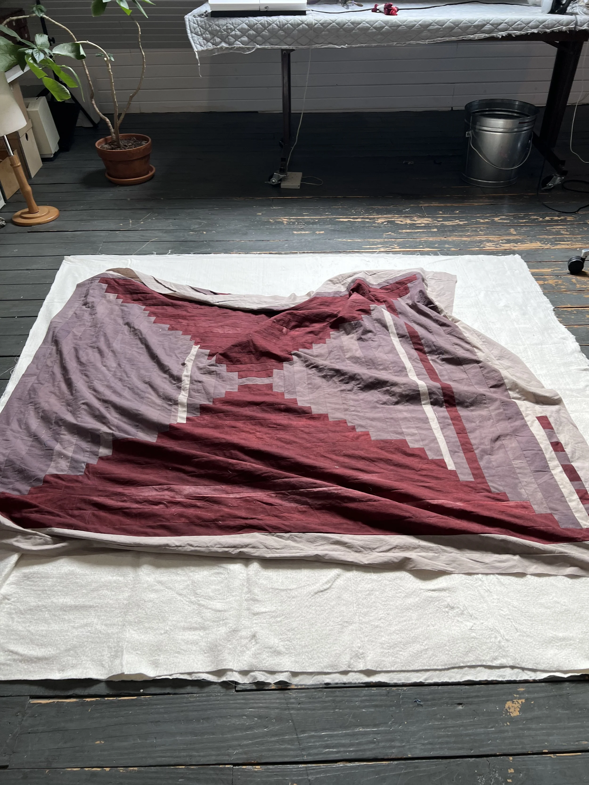This courthouse steps single block quilt was made in collaboration with my child. These are not colors I would have chosen. I love the process of collaboration. Pushing me to new places that I can’t get to myself.
